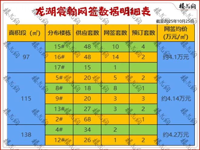 2、位于5#、8#、9#、13#的115平户型,网签了20套,另有8套显示已预订,网签均价约4.14万元/平米;